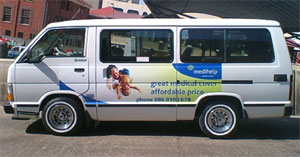Medihelp applicated taxis with the message “Great medical